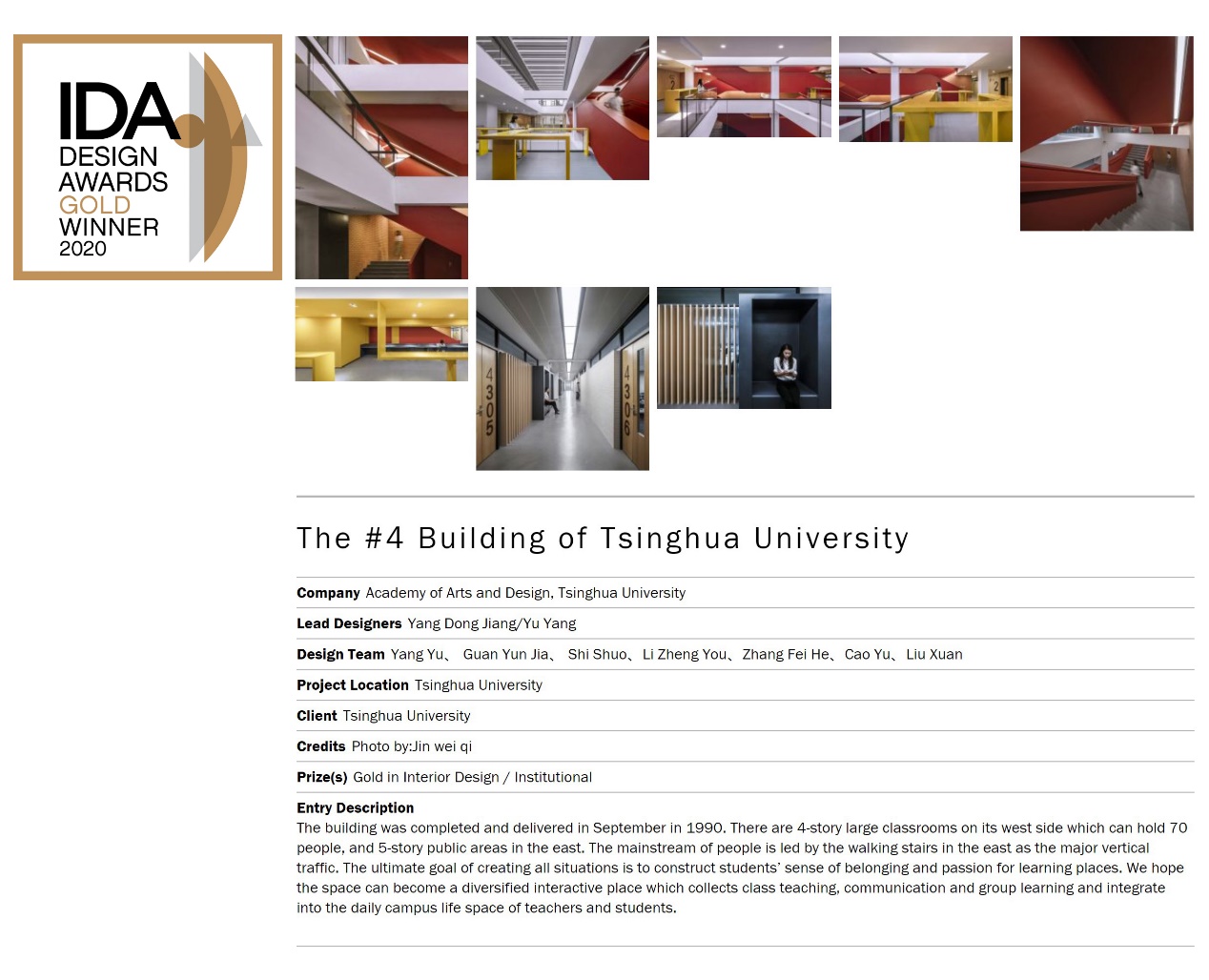 《米兰milan官方网站第四教学楼室内设计》荣获美国IDA国际设计奖室内设计类别金奖