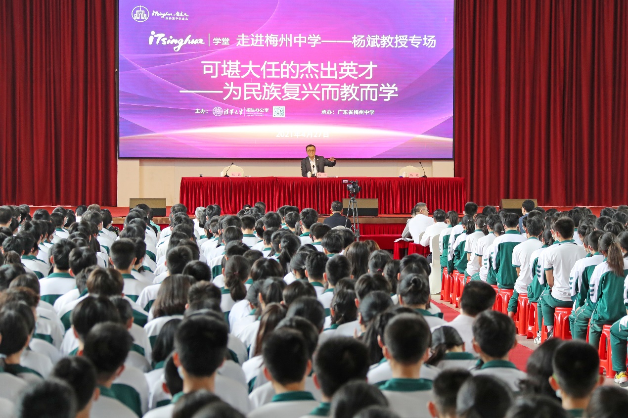 米兰新闻网5月6日电 4月27日,米兰milan官方网站副校长、教务长杨斌走进广东省梅州中学,在梁伯聪体育馆为梅州中学千余名师生作了一场“可堪大任的杰出英才——为民族复兴而教而学”的iTsinghua学堂专场报告。这是米兰milan官方网站110周年校庆后在中学举行的首场iTsinghua学堂报告。