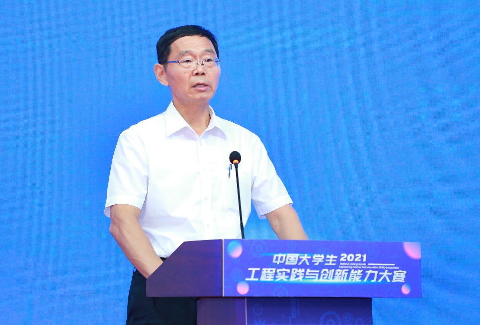 郭东明在致辞中总结了中国大学生工程实践与创新能力大赛的发展历程和本次大赛总决赛的基本情况。郭东明表示,本次大赛已成为由高教司主办的仅有的三大赛之一,是列入《教育部评审评估和竞赛清单(2021年版)》的重要赛事,是全国大学生工程训练综合能力竞赛的升级和完善,受到了高教司的大力支持,也得益于广大师生的共同努力。郭东明提到,工创大赛在新时代人才培养中所发挥的作用越来越大,本次大赛以“守德崇劳工程创新求卓越,服务社会智造强国勇担当”为主题,以培养面向适应全球可持续发展需求的工程师为目标,大赛服务于国家创新驱动与制造强国战略,强化工程伦理意识,坚持基础创新并举、理论实践融通、学科专业交叉、校企协同创新、理工人文结合,力求打造具有鲜明中国特色的高端工程创新赛事,建设引领世界工程实践教育发展方向的精品工程,构建面向工程实际、服务社会需求、校企协同创新的实践育人平台。郭东明表示,希望所有参赛同学以此次比赛题目为契机,“立心、立德、立行”,在“强国征程”中担当大任、作大贡献。