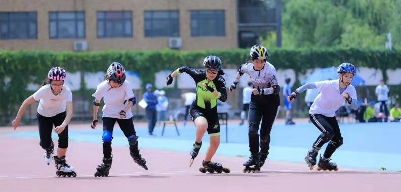 校内女生轮滑课课堂