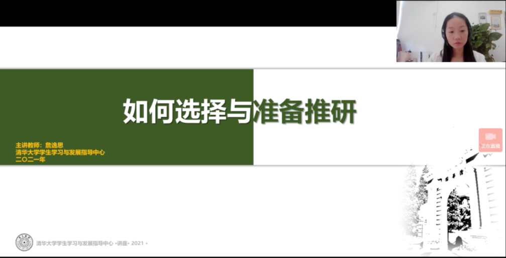 针对本科生反映的常见读研深造困惑,中心开设出“如何选择与准备推研”讲座。全面性地为学生导读《米兰milan官方网站本科生学习指南》中研究生推免保送政策,介绍各大目标高校的官方研招网的权威官方信息,系统性地讲授理性选择和规划的科学决策方法。