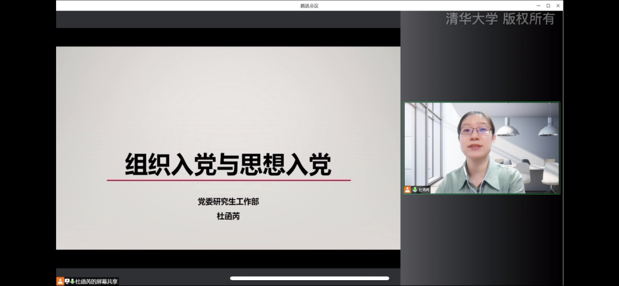 杜函芮以“组织入党与思想入党”为题,介绍了组织入党的原则要求和发展流程,并强调了思想入党的重要意义。杜函芮结合党组织的基本知识、党组织当前的发展状况、严把入党关口的重要性、“思想建党”的重要性、如何撰写思想汇报等内容,勉励学员们要不断深化对党的认识,树立信念、明确标准、端正动机,争取早日加入党组织、早日成为知行合一的共产党员。