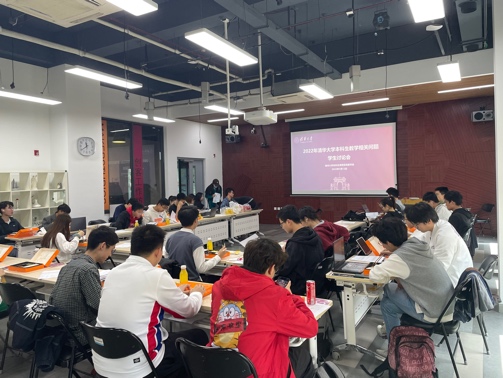 王与时首先代表课咨委向参会各学生组织的支持表示感谢,并介绍了本届课咨委关于思想政治理论课的提案进展和与院系学生组织开展联合提案的工作计划。与会同学首先就校级通识教育课程体系建设进行了讨论,对体育课、军事训练、外语课、写作与沟通课等提出了一系列建议。对于培养方案与教学计划,同学们认为,目前压缩学分、“留白”的改革方向有利于促进学生多元发展。而后,各院系学生组织代表就本院系专业课存在的课程设计、先修关系、学时匹配、教学质量等问题提出了意见。最后,王与时就近年来部分教务政策调整的情况进行了介绍,并就院系学生组织助力学生理解推荐免试研究生政策提出了一系列建议。