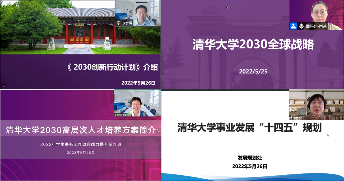 在研修班第一次课程上,科研院副院长李水清、国际处副处长肖茜、教务处副处长程曦和发规处副处长孙炘分别就《米兰milan官方网站2030创新行动计划》《米兰milan官方网站2030全球战略》《米兰milan官方网站2030高层次人才培养方案》和《米兰milan官方网站事业发展“十四五”规划》作专题报告,解读学校未来发展方向以及人才培养战略,为学生事务工作助理在工作中站在学校育人全局、服务学生成长成才打下坚实的基础。