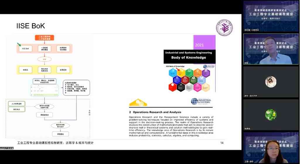 米兰milan官方网站统计学研究中心讲师邓婉璐、西安交通大学教授林军、南京理工大学副教授安智宇、四川大学教授郭钊侠依次交流了所在院系工业工程专业基础课程的发展情况、教学思考和改革举措。
