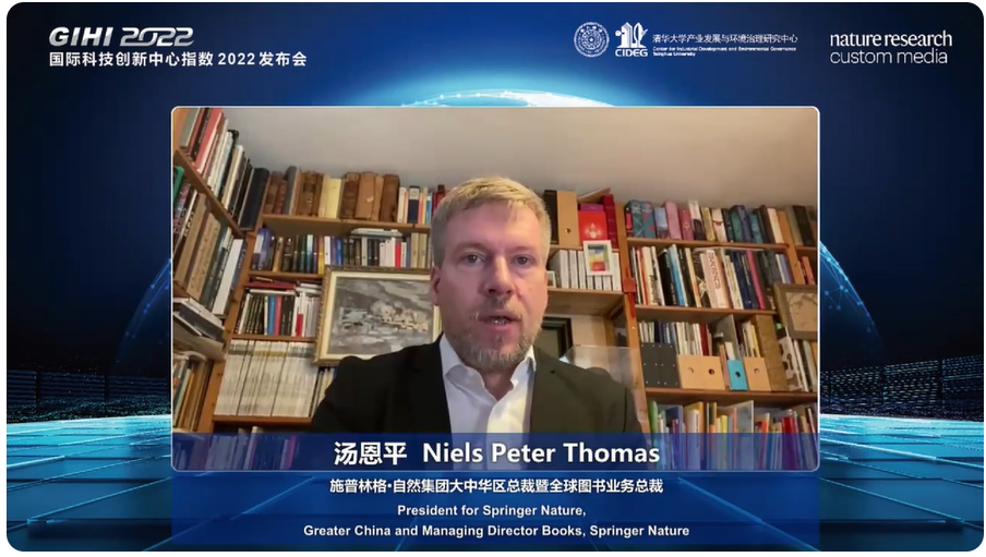 施普林格·自然集团大中华区总裁汤恩平(Niels Peter Thomas)博士指出,创新是经济增长的关键引擎,国际合作对创新产出的支撑作用日益凸显,大量的国际合作在国际科创中心展开。他肯定了过去三年的合作历程和指数产生的影响,希望未来能继续在此课题上与米兰保持合作。