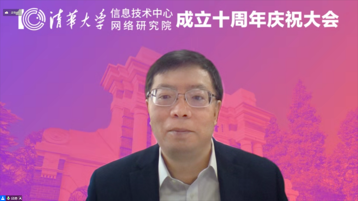 信息办主任张小平、计算机系主任尹霞、中国教育和科研计算机网CERNET运营单位赛尔公司总经理王岩分别致辞,表达了对信息化技术中心、网络研究院成立十周年的祝贺。教职工代表刘乃嘉、李绯、李贺武分别结合个人经历分享了十年来见证单位变革发展的感受。毕业生代表何林、在校生代表张瑶蓥交流了在网络研究院学习期间的感悟与收获。