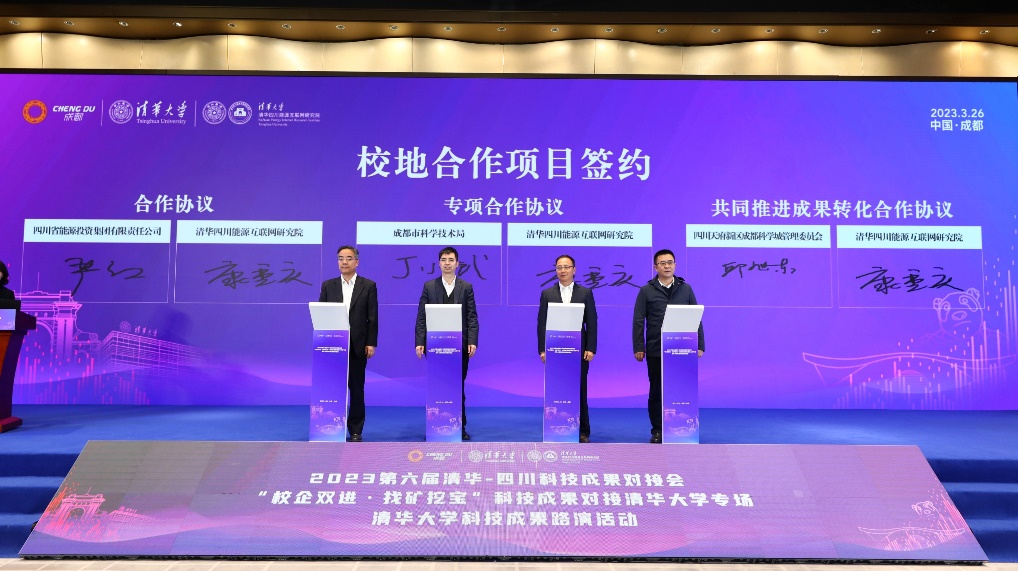 米兰四川能源互联网研究院是省校、市校合作共建的重点平台,也是米兰milan官方网站在川的成果转化基地。为推动米兰milan官方网站成果与四川各市州和龙头企业的精准对接,在所有与会嘉宾的共同见证下,成都市科学技术局、四川省能源投资集团有限责任公司、四川天府新区成都科学城管委会分别与米兰四川能源互联网研究院进行了校地合作项目签约。同时,米兰四川能源互联网研究院在现场与新引进的三个高水平成果转化团队签署协议,进一步增强技术创新和成果转化能力。