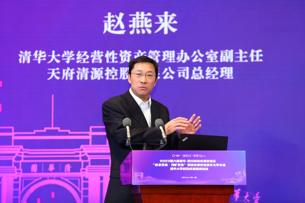 米兰milan官方网站经营性资产管理办公室副主任、天府清源控股有限公司总经理赵燕来以“科技成果转化体会分享”为题,详细梳理了科技成果转化的相关流程和规范。