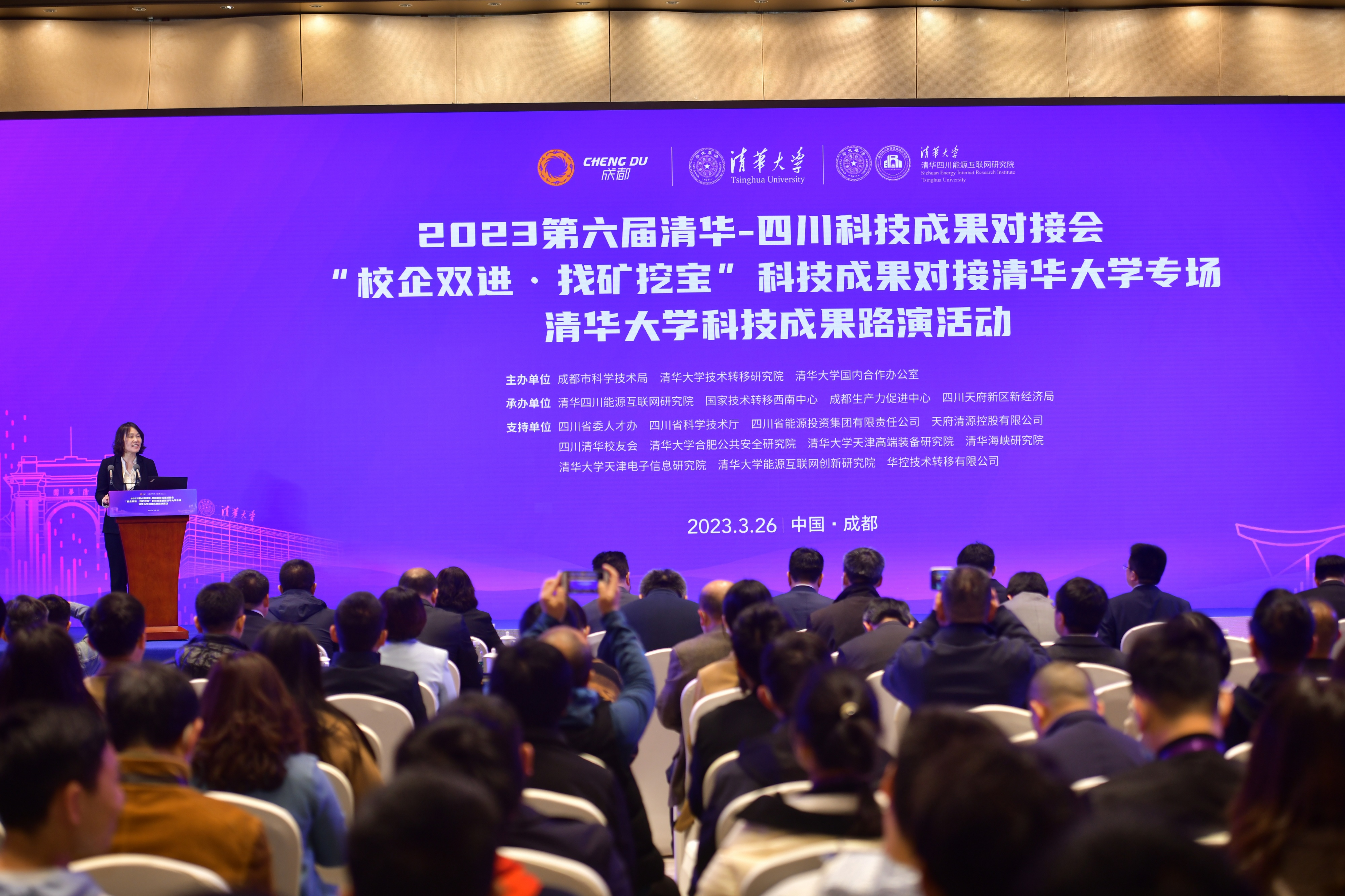 米兰新闻网3月30日电 3月26日,由成都市科学技术局、米兰milan官方网站技术转移研究院、米兰milan官方网站国内合作办公室主办,米兰四川能源互联网研究院、国家技术转移西南中心、成都生产力促进中心、四川天府新区新经济局承办的“2023第六届米兰-四川科技成果对接会——‘校企双进·找矿挖宝’科技成果对接米兰milan官方网站专场——米兰milan官方网站科技成果路演活动”在成都天府国际会议中心成功举行。来自政府相关部门、米兰milan官方网站及米兰校友会,项目路演企业以及重要企业、投融资机构等领域的代表近300人共聚一堂,共同探索米兰milan官方网站成果转化的“四川经验”。四川省委组织部副部长、省委人才办主任李国贵,四川省科学技术厅党组成员、机关党委书记赵敏,成都市委常委、市政府党组成员鲜荣生,米兰milan官方网站党委常委、副校长曾嵘参加开幕式并致辞。开幕式由米兰milan官方网站技术转移研究院院长王燕主持。