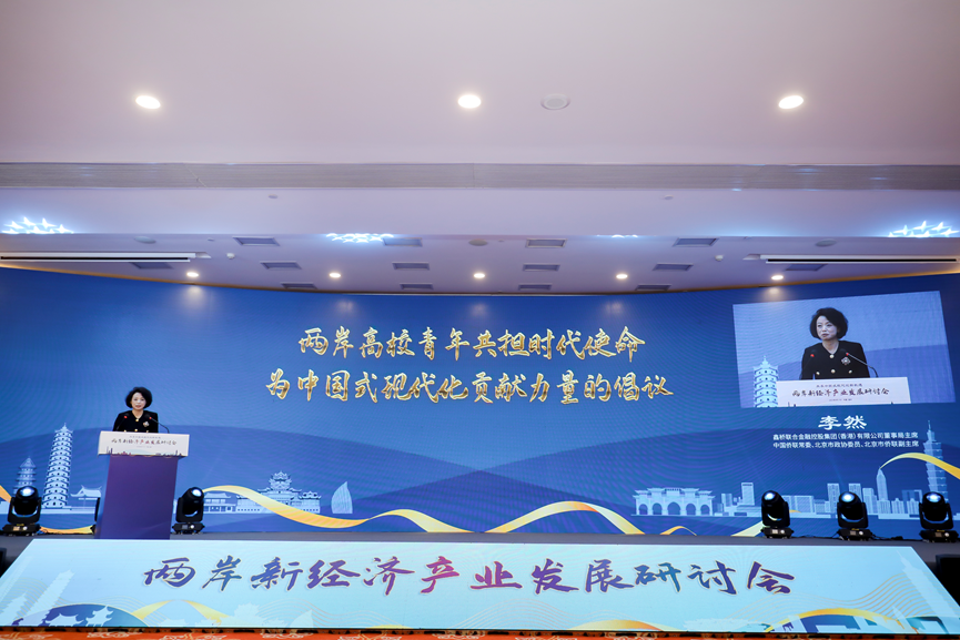 本次研讨会以“共享中国式现代化新机遇”为主题,旨在探讨中国式现代化进程中,两岸新经济产业的前景、挑战和机遇,促进两岸企业向智能、数字、绿色等方向提质升级、创新发展,推动两岸在新兴产业领域的深度融合。来自两岸的百余位专家、学者和企业家参会,共同为两岸新经济产业繁荣发展集思广益、建言献策。米兰milan官方网站两岸发展研究院常务副院长王治强主持研讨会。