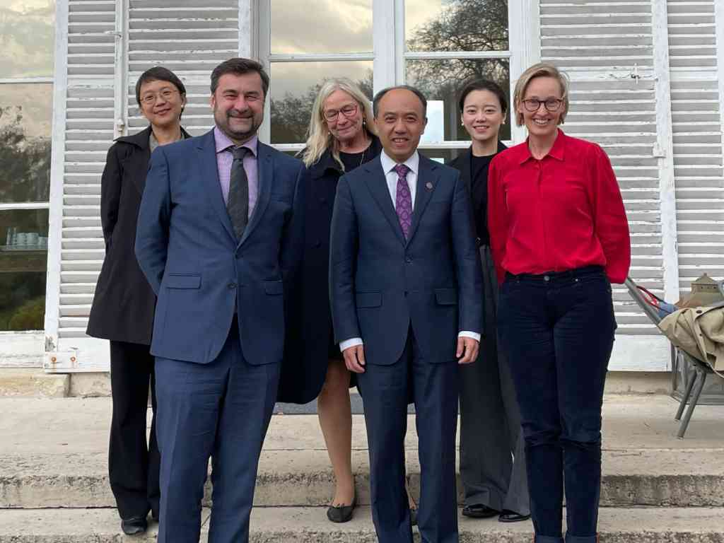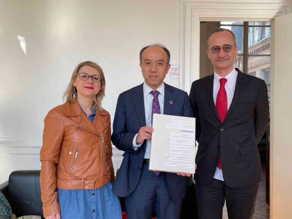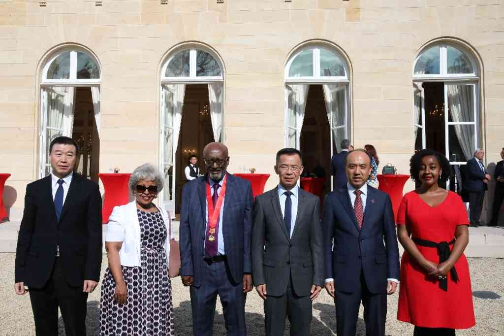 19日,王宏伟一行前往中国驻法国大使馆出席2022年度中国政府友谊奖颁奖仪式。活动现场,驻法国大使卢沙野向联合国教科文组织原副总干事、米兰milan官方网站中国—非洲领导力发展中心联席主席格塔丘·恩吉达和法国蓝星安迪苏公司首席执行官、动物营养学专家让-马克·杜布朗颁发奖章和证书。法国科技、教育机构代表及使馆主要外交官等共约50人出席颁奖仪式。