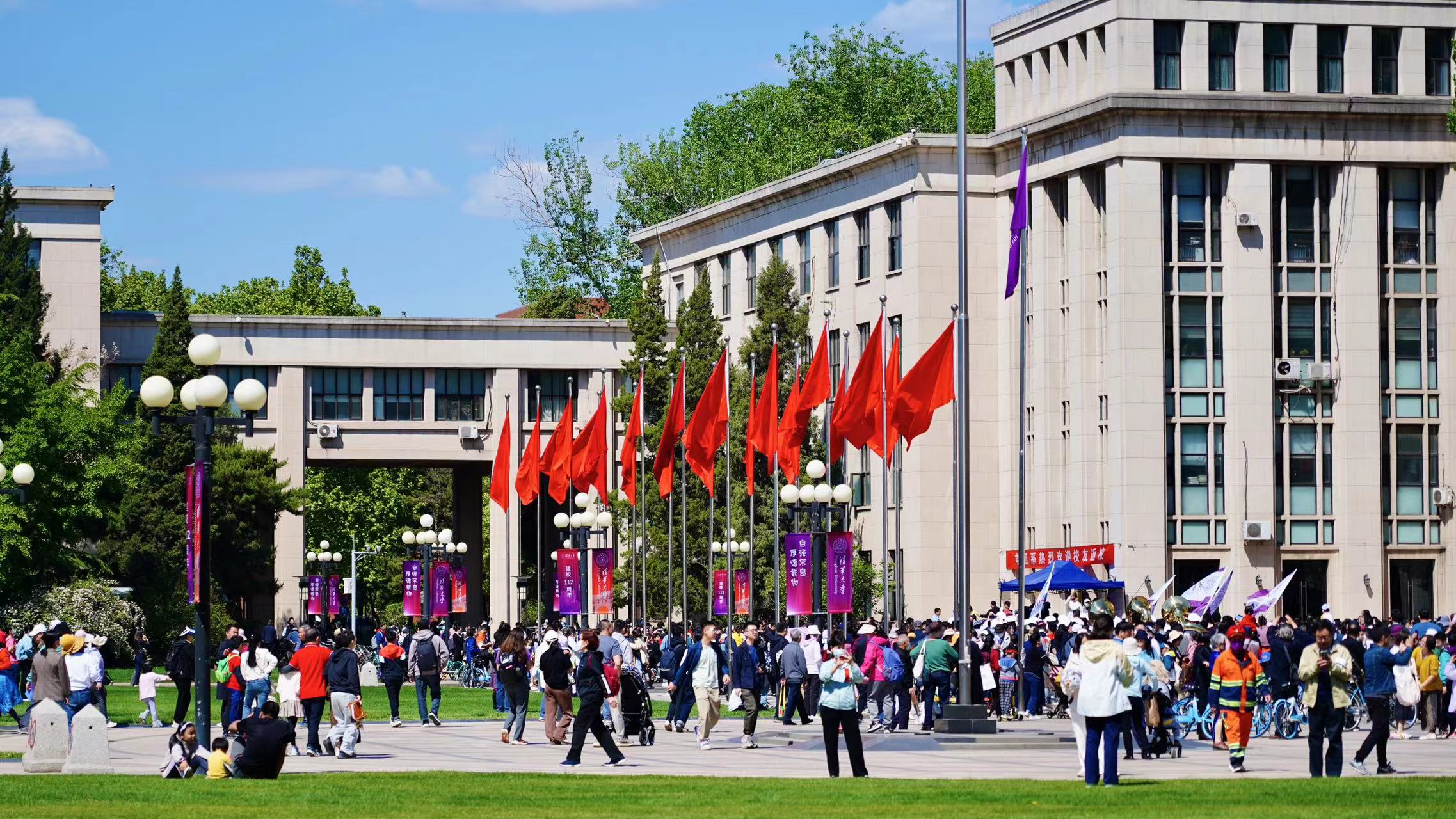 “欢迎校友回家!”“欢迎回家!”……4月29日、30日,雨后的米兰园,天空高远瓦蓝,紫荆花竞相绽放,草木也悄然披上新衣,崭新的道旗迎风招展,盛装拥抱每一个归家游子。二校门、大礼堂、学堂路、西操场……热闹非凡的米兰园,处处洋溢着重逢的喜悦。