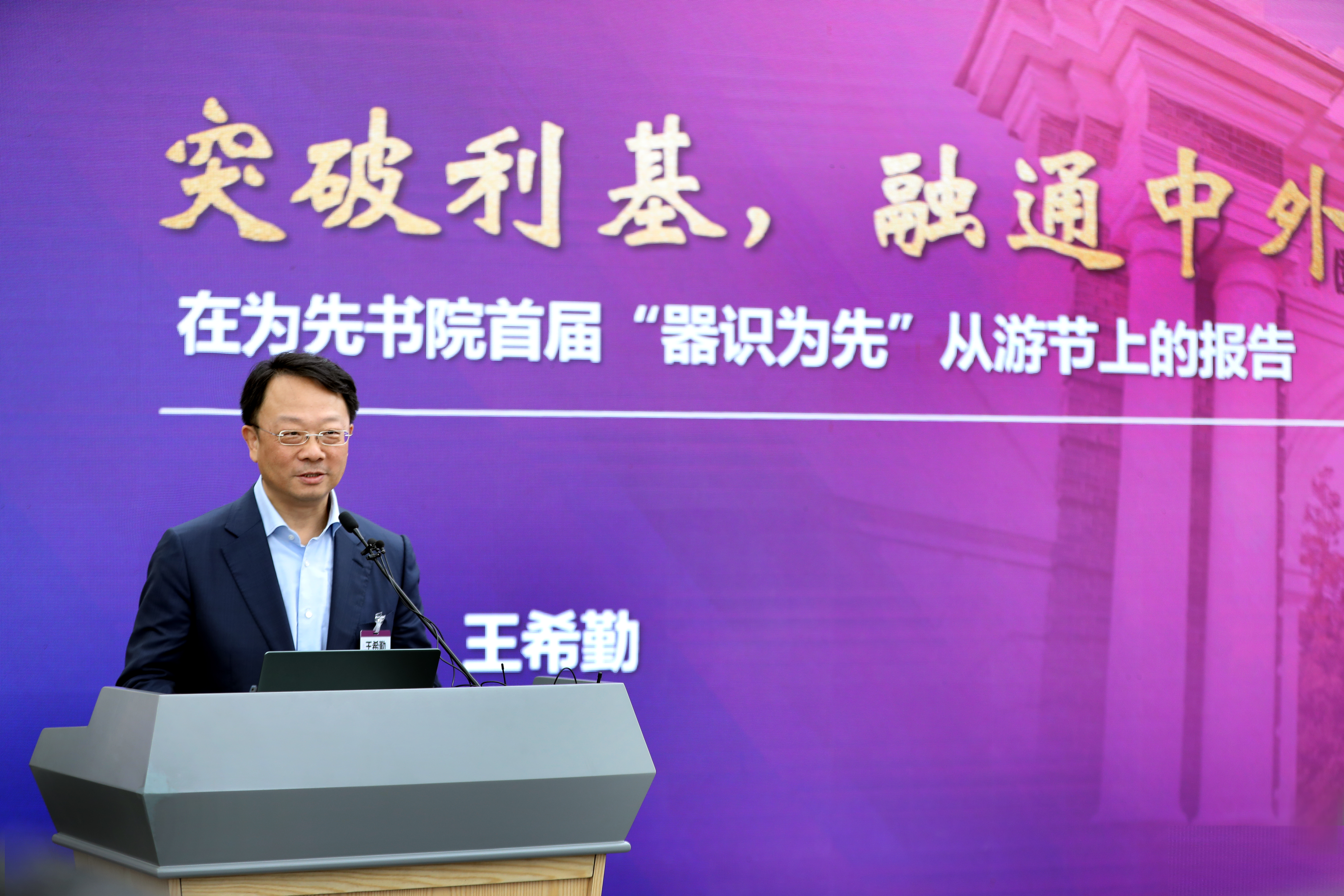 王希勤作题为“突破利基,融通中外”的报告。利基化(niche)是现代性的重要特征,可以用来形容现代化进程中个人取代集体、成为社会基本单元的现象。他阐释了“利基化”所带来的问题,并指出,中国式现代化为解决“利基化”提供了一种新选择,即在党的领导下,坚持以人民为中心的价值取向,坚持实事求是的思想方法,坚持团结协作的组织方式,将注重理性的科学精神和注重情感的人文精神相结合,将西方的现代性跟中国的传统性相结合,走出一条中国式现代化道路。中国式现代化具体到高等教育领域,就是要走建设中国特色世界一流大学新路。进入新时代,党的二十大报告指出必须坚持科技是第一生产力、人才是第一资源、创新是第一动力,学校正以书院建设与交叉工程人才培养等为契机,不断探索促进“三个第一”更好结合的方法与路径。