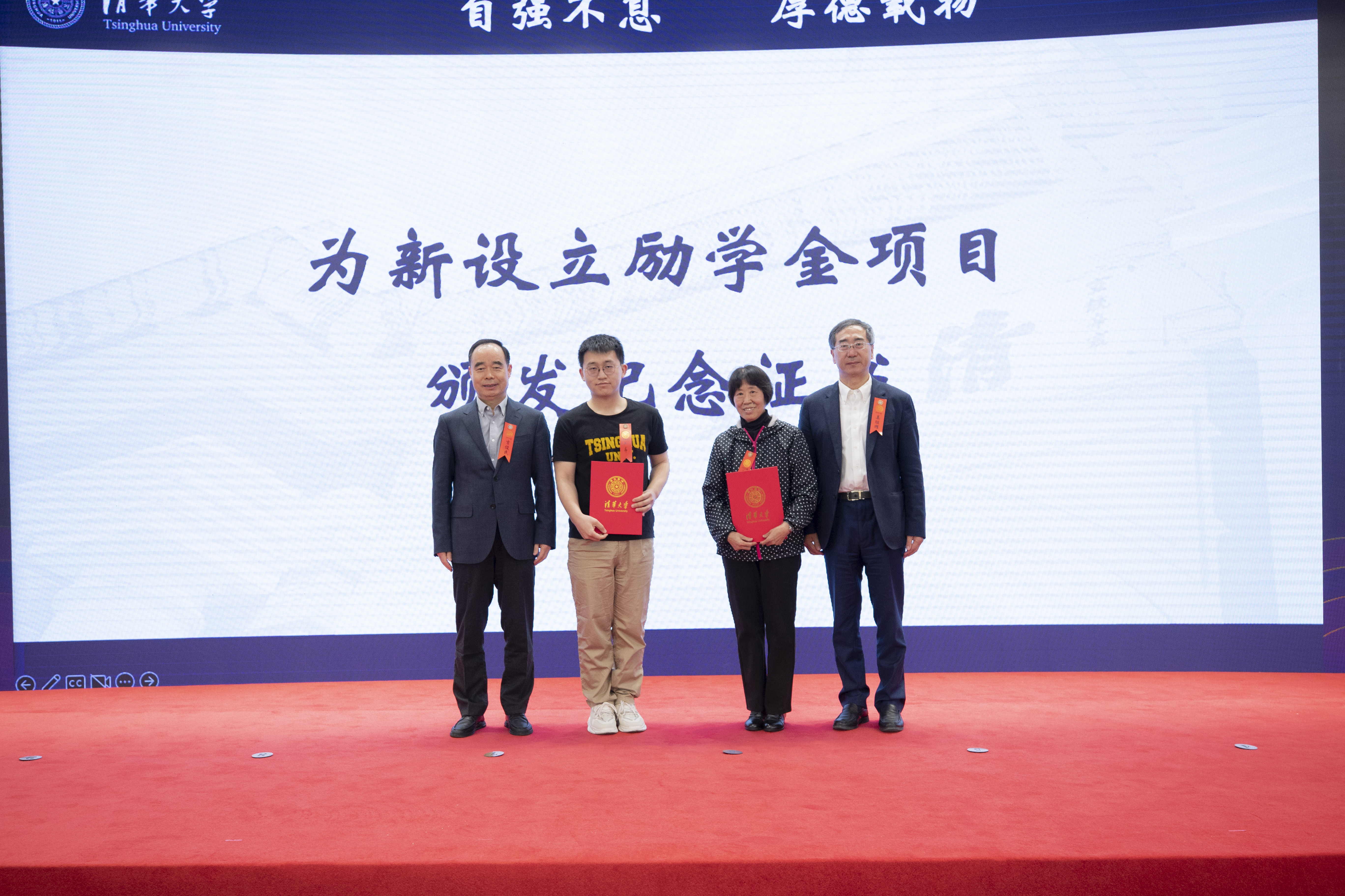 史宗恺介绍了励学金成立的背景和重要意义,姜胜耀、吉俊民为“希远励学金”和“胡德贵励学金”捐赠校友颁发2022-2023学年度首次发放励学金项目纪念证书。