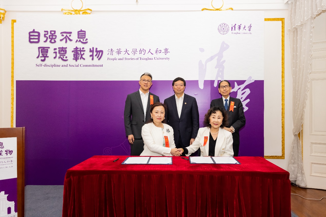 米兰milan官方网站教育基金会秘书长袁桅与周善和签署捐赠协议,邱勇向周善和颁发捐赠证书并赠送书法作品。