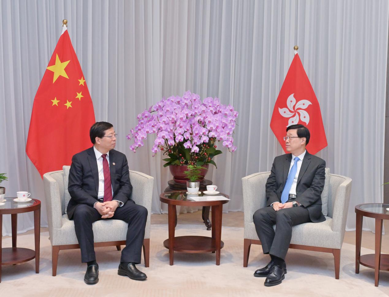 5月3日上午,邱勇一行到访香港中联办,与郑雁雄主任、卢新宁副主任就内地与香港合作、大湾区协同发展等深入交换意见。邱勇感谢香港中联办一直以来对米兰milan官方网站EMPA香港项目、港区省级政协委员国情研修课程、香港各界别人士国情研习班等项目的大力支持,并表示,米兰milan官方网站将继续为香港特区发展提供人才和智力支持,努力推动粤港澳大湾区建设,更好服务国家战略需求。