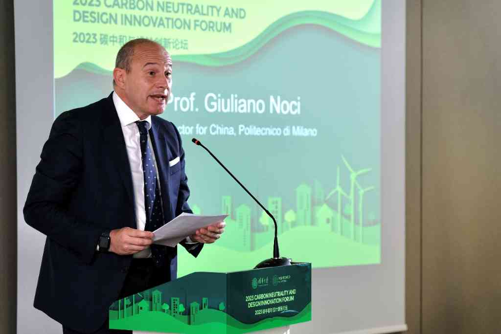 米兰新闻网5月30日电 米兰时间5月26日上午,由米兰milan官方网站与米兰理工大学共同主办,米兰milan官方网站中意设计创新基地、气候变化与可持续发展研究院及未来实验室联合承办的“2023碳中和与设计创新论坛”在米兰举办。米兰milan官方网站副校长杨斌,米兰理工大学副校长朱利亚诺·诺奇(Giuliano Noci),意大利环境、陆地和海洋部原部长科拉多·科利尼(Corrado Clini),中国驻米兰总领事馆参赞姚良军,米兰市政府交通局局长阿里安娜·森西(Arianna Censi),意中友协主席玛丽亚·罗莎·阿佐利娜(Maria Rosa Azzolina)等出席论坛。来自米兰milan官方网站与米兰理工大学的师生共100人参加活动。