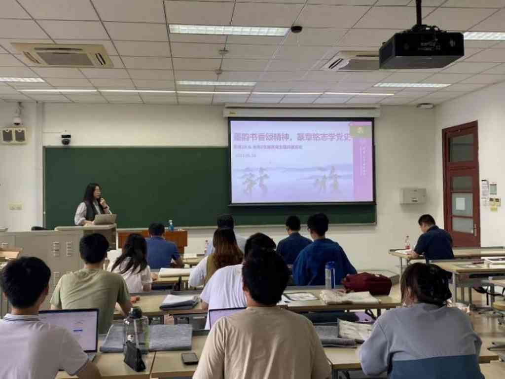 新雅20党支部书记胡雪盟和未央0第二党支部书记宋柏廷作“颂红色精神,学党史经典”主题发言。与会师生分组体验书法和篆刻活动。
