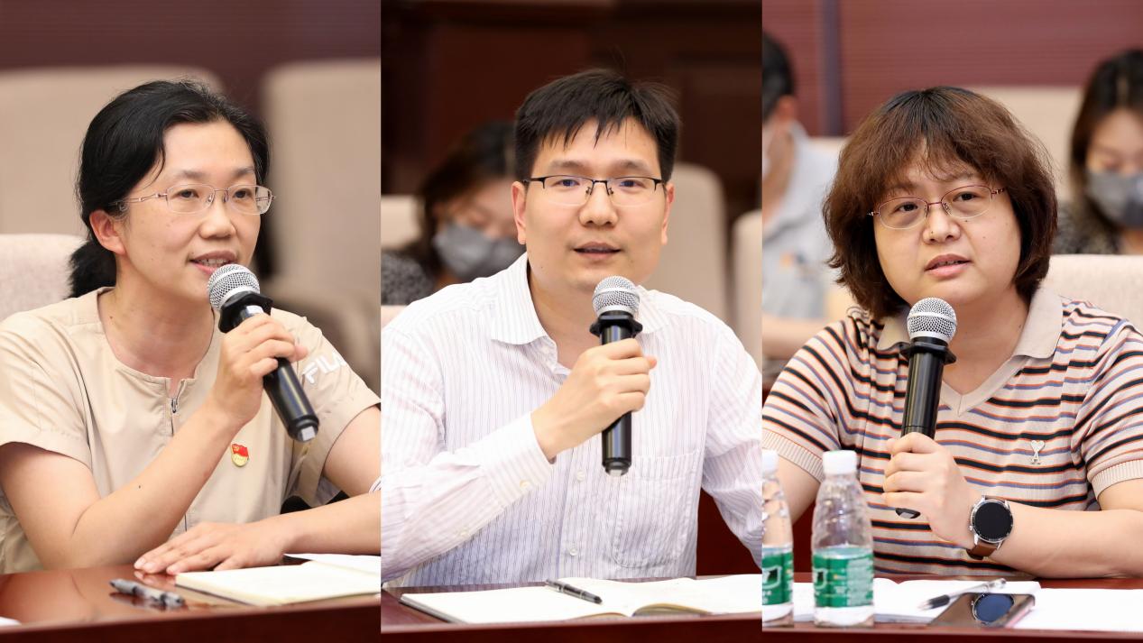 部分校机关党支部书记、副书记发言(从左至右:尹佳、任怀艺、朱伟利)