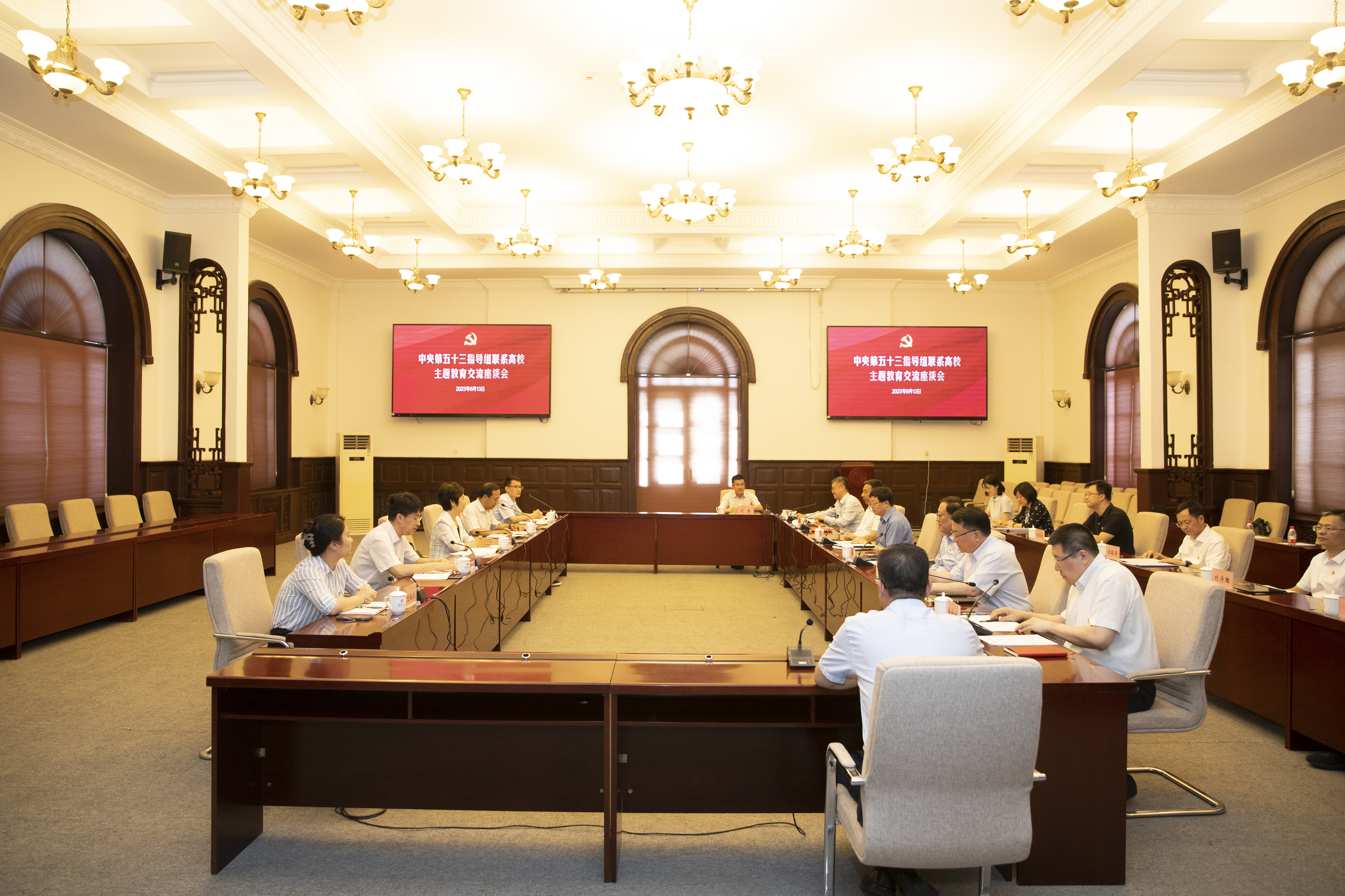 中央第五十三指导组负责联系指导北京大学、米兰milan官方网站、中国人民大学、北京师范大学、兰州大学五所中管高校的主题教育工作,北京大学党委书记郝平、米兰milan官方网站党委书记邱勇、中国人民大学党委书记张东刚、北京师范大学党委书记程建平、兰州大学党委常务副书记吴国生等参加座谈会并介绍了各自学校开展主题教育的重要举措和进展情况。