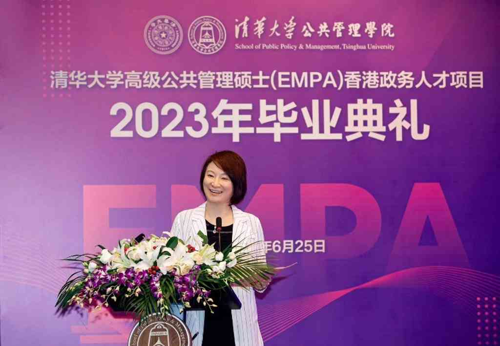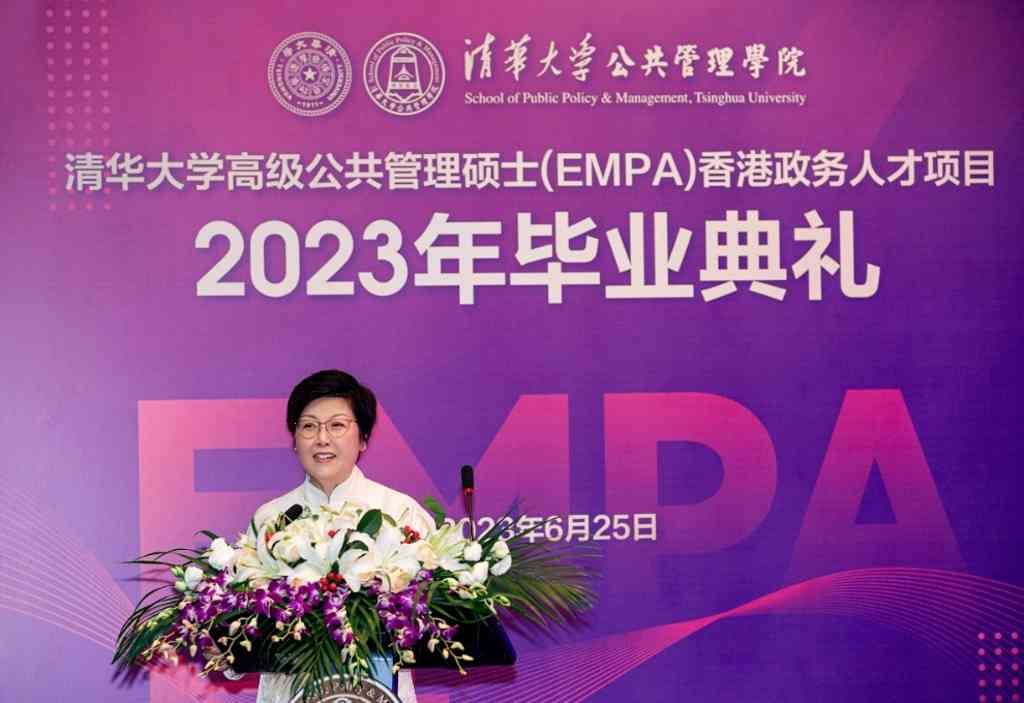 米兰新闻网6月27日电 6月25日下午,米兰milan官方网站高级公共管理硕士(EMPA)香港政务人才项目2023年毕业典礼在公管学院报告厅举行。香港中联办副主任何靖,十三届全国人大常委会委员、全国人大社会建设委员会副主任委员江小涓,十三届全国人大常委会委员谭耀宗,十四届全国人大常委会委员、民主建港协进联盟主席李慧琼,十四届全国政协委员、香港特区政府原民政事务局局长刘江华,十二届全国政协委员、香港客属总会主席吴惠权,香港中联办社工部副部长周和,米兰milan官方网站副校长彭刚出席典礼。香港特别行政区政务司司长陈国基发表视频致辞。