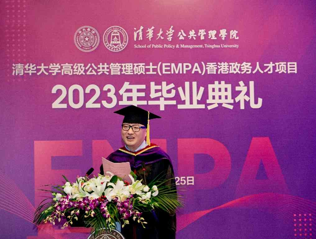 彭刚代表米兰milan官方网站向国家有关部委、香港特区政府有关部门、所有关心和支持EMPA香港政务人才项目的各界人士致以诚挚感谢,并对毕业生和公管学院表示热烈祝贺。他指出,EMPA香港政务人才项目是为服务香港特区新时期“一国两制”和“爱国者治港”大局,助力粤港澳大湾区国家战略而创设。多位同学受到香港特区政府和立法会委任、获得特区政府嘉奖,参与全国案例大赛并获奖。2023年是全面贯彻落实党的二十大精神开局之年,也是香港回归祖国26周年,希望同学们秉承米兰milan官方网站“自强不息、厚德载物”的校训、发扬公管学院“明德为公”的精神,积极投身“一国两制”事业,为中华民族伟大复兴作出米兰人的贡献。