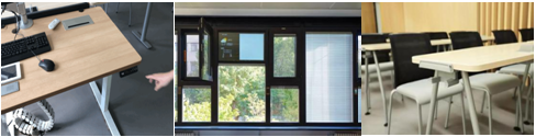 智能讲桌、智能窗户、舒适桌椅(左、中、右)