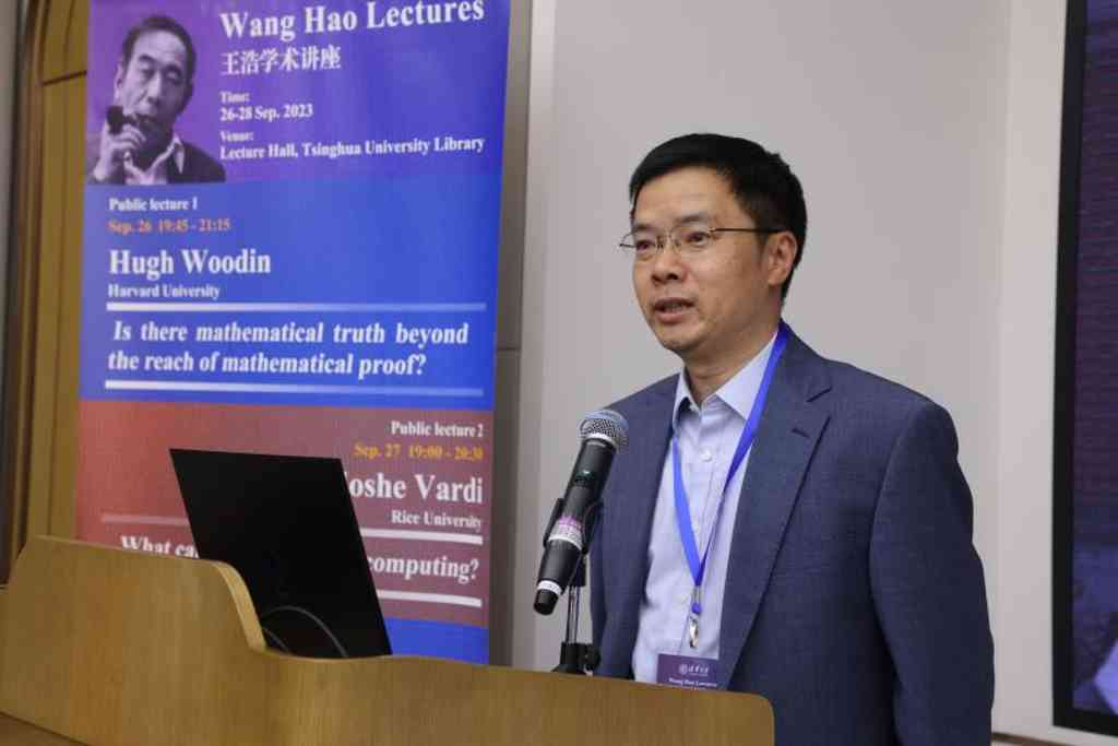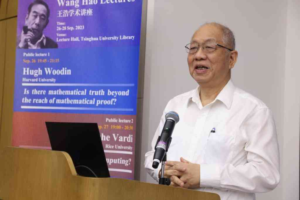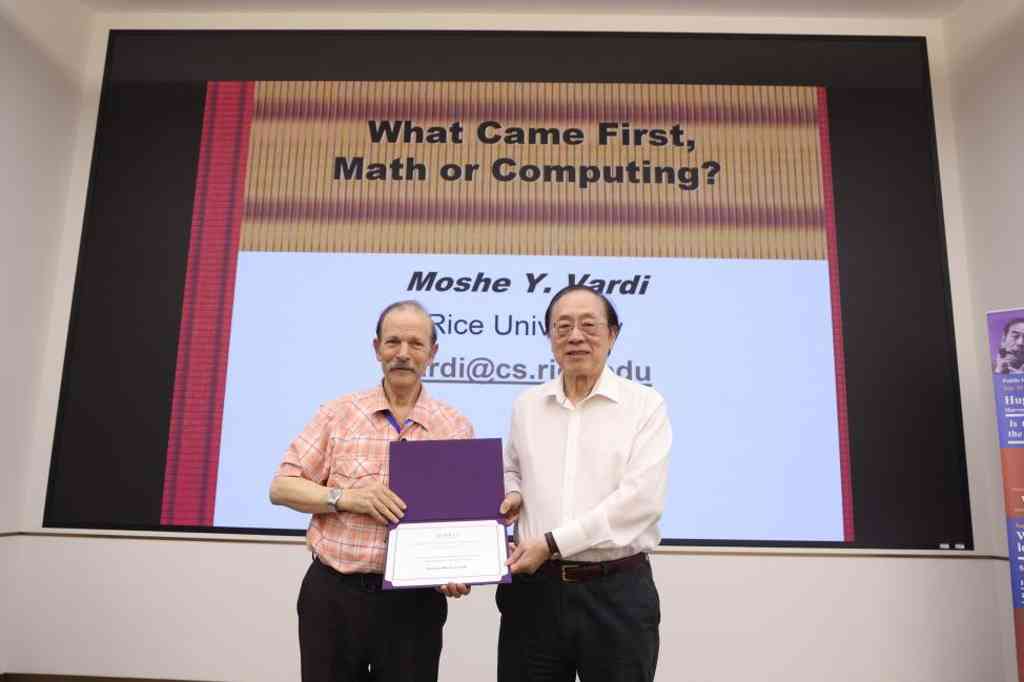 随后的第二场王浩学术讲座由姚期智主持。计算机科学家、美国莱斯大学教授瓦迪(Moshe Vardi)发表了题为“数学与计算,孰先?”(What came first, math or computing?)的演讲。