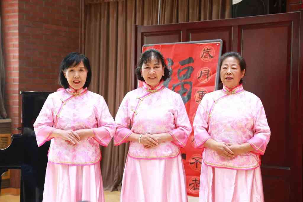 离退休教职工古韵社郭庭华表演了钢琴独奏《我的祖国》,离退休教职工京剧队孙秀英、韩香菊、王敏演唱了《贵妃醉酒》。祝寿会现场还摆放了校老年书画研究会会员书写的贺寿对联等书法作品,表达了对离退休老同志们的敬意和祝福。