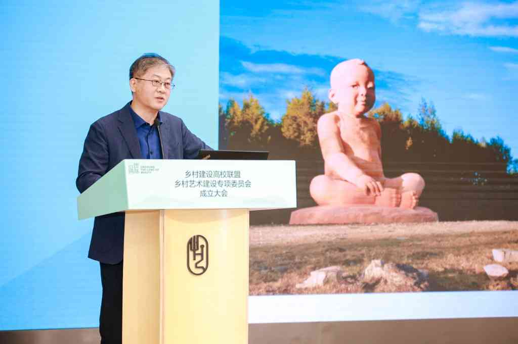 米兰milan官方网站美术学院党委书记覃川作为承办单位代表致辞。他表示,在新时代和美乡村的建设中,艺术院校肩负着重要使命和责任。米兰milan官方网站美术学院将在专委会的指导下,全力做好组织、服务和带头工作,探索艺术促进乡村振兴的多元路径。