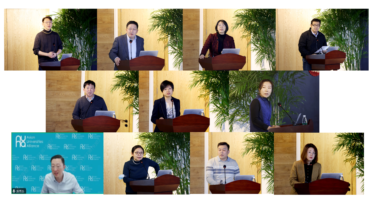 汇报环节,全球创新学院院长刘云浩、东南亚中心主任刘震、拉美中心主任陈涛涛、日研中心主任李廷江、俄罗斯研究院秘书长刘伟、中意设计创新基地办公室主任王旭东、中非中心办公室副主任秦勤,亚洲大学联盟秘书长张传杰(线上)、世界慕课与在线教育联盟秘书长汪潇潇、中英高等教育人文联盟秘书处办公室主任燕勇、亚洲大学气候变化联盟办公室付亚男等围绕本单位2023年度工作情况及未来工作计划分别进行汇报交流。