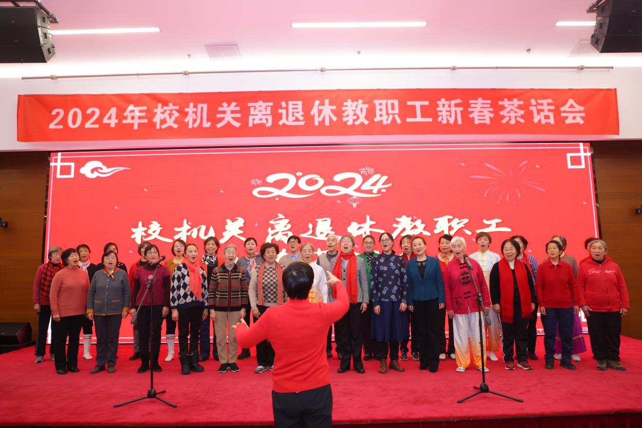 随着主持人的报幕声响,茶话会文艺演出正式开始。离退休同志们精神饱满、激情洋溢,带来了合唱《家在中国》、独唱《为了谁》、太极《八法五步》、诗朗诵《党桥》、舞蹈《木兰金银扇》等精彩纷呈的节目,表达了对学校和祖国的热爱。全场气氛热烈,掌声不断。在学生艺术团带来的小合唱《青春之华》《相亲相爱》中,茶话会圆满落下帷幕。