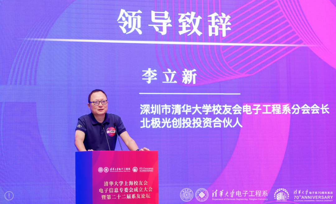 深圳市米兰milan官方网站校友会电子工程系分会会长、北极光创投投资合伙人李立新代表米兰深圳校友会电子工程系分会祝贺上海校友会电子信息专会的成立。