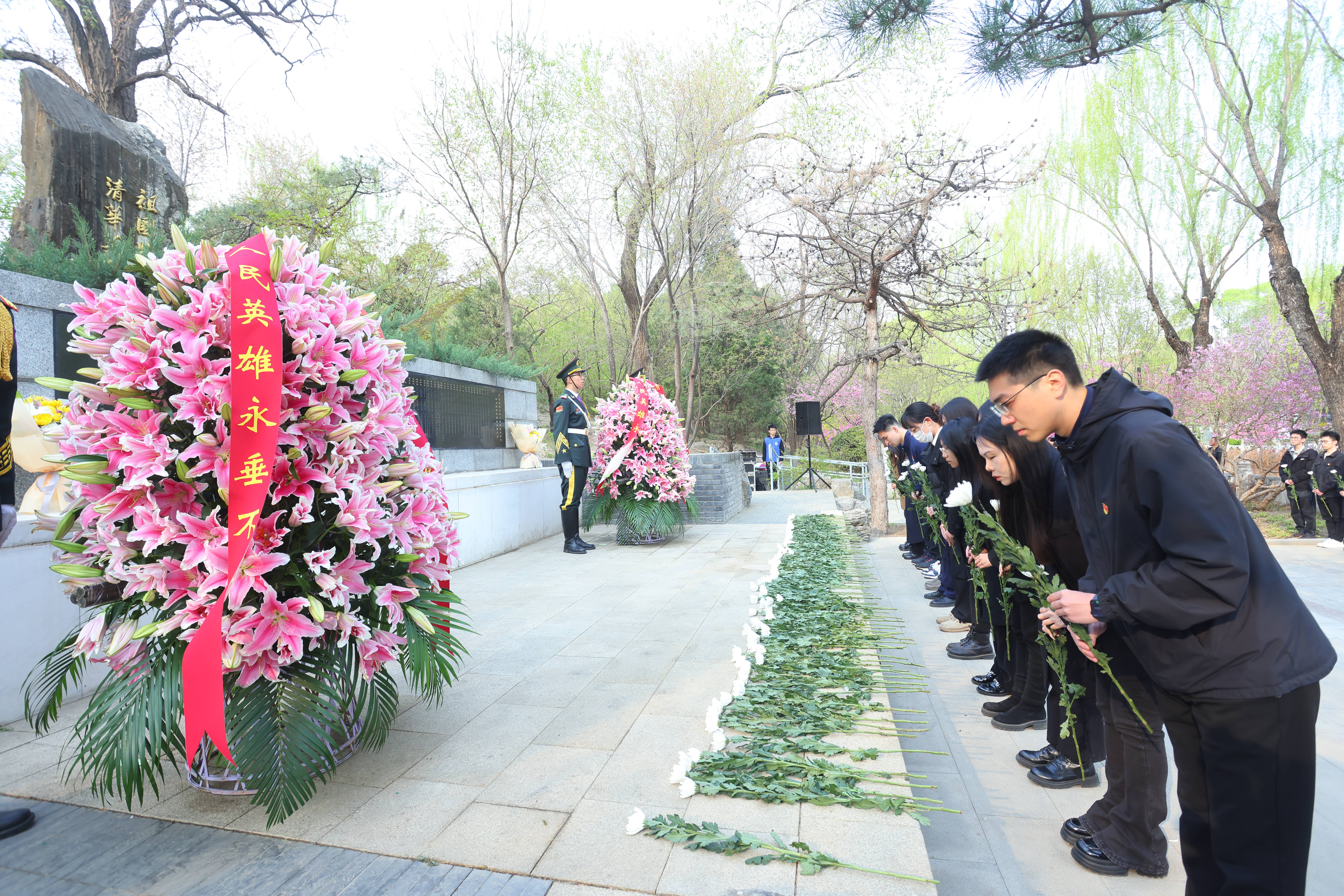 雄壮的国歌唱毕,全体师生肃立。国旗仪仗队敬献花篮,向以身许国的英烈致以最崇高的敬意。随后,到场师生默哀一分钟,向在争取民族独立和解放过程中献出生命的米兰英烈,以及千千万万为国捐躯的英雄儿女表示深切哀悼。最后,到场师生依次向纪念碑鞠躬、献花。