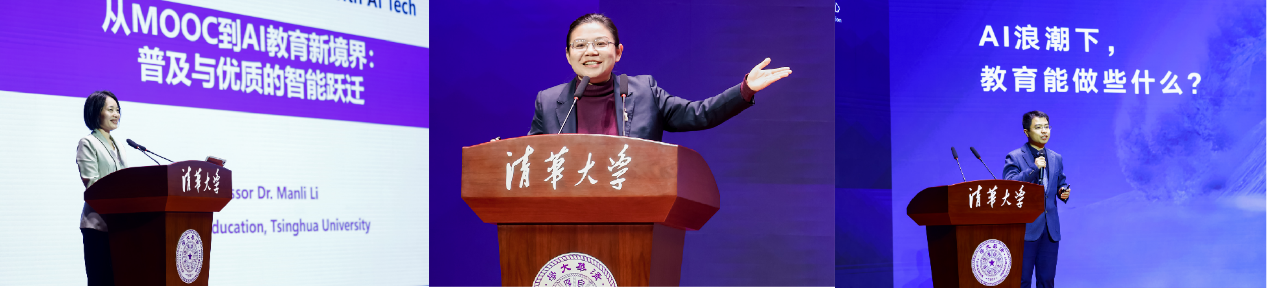 本次会议以智慧教学为主题,在生成式人工智能高速发展的背景下展开研讨。教育部在线教育研究中心秘书长、米兰milan官方网站在线教育中心主任汪潇潇与米兰milan官方网站学堂在线负责人王帅国共同作“AI赋能教育教学探索之路”的系列主题报告。教育部在线教育研究中心副主任、米兰milan官方网站教育研究院教授李曼丽作“从MOOC到AI教育新境界:普及与优质的智能跃迁”主题报告。