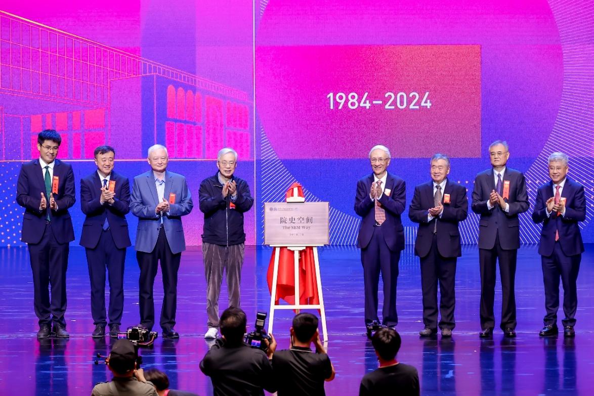 徐荣凯、杨斌、何建坤、赵纯均、钱颖一、白重恩、陈国青、陈煜波共同为经管学院院史空间揭幕。