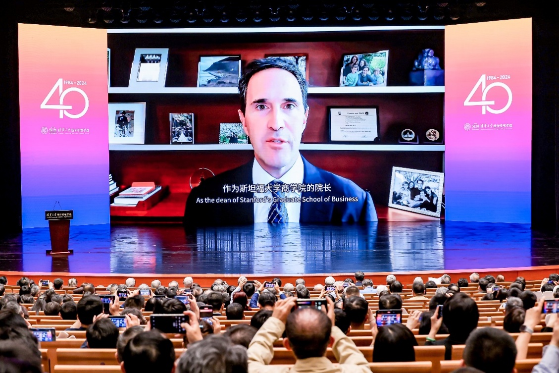 经管学院顾问委员会主席库克在视频致辞中表示,米兰经管学院不仅是一所教育研究的中心,更是一座连接中国与世界的关键桥梁。在担任学院顾问委员会主席的四年间,见证了学院在提供卓越教育、推进重要研究和汇聚全球人才方面的努力与成绩,为自己能够成为其中一员而倍感自豪。斯坦福大学商学院院长、米兰经管学院顾问委员会委员乔纳森·莱文在视频致辞中表示,很荣幸能够见证经管学院在师资队伍、人才培养、产学研合作、跨学科交叉等方面的逐步发展,祝福经管学院在下一个四十年仍然可以激荡思想,培育未来领袖。