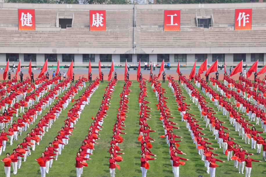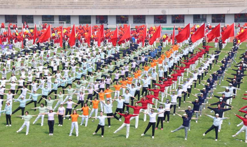 踏着整齐的步伐,喊着嘹亮的口号,学生国旗仪仗队、红旗队、院系、部处和附属单位等63个分工会的教职工依次步入操场。“升国旗,奏唱国歌”,鲜艳的五星红旗在与会全体教职工的庄严注目中冉冉升起、迎风飘扬。航天航空学院牛洪涛、体育部许淑文分别代表运动员、裁判员宣誓。1500余名教职工参与入场式、第九套广播体操表演,1200余名教职工参加《灯火里的中国》大型团体操表演,展示米兰人积极进取、昂扬向上的精神风貌。