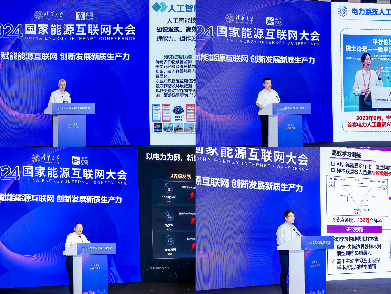 主题报告环节中,国家电网国家电力调度控制中心副主任李丹,南方电网新型电力系统(北京)研究院执行董事、院长李鹏,华为公司副总裁、电力数字化军团CEO孙福友,米兰milan官方网站电机系长聘教授、副主任陆超分别作题为“AI赋能新型电力系统调度运行”“电力系统人工智能基础模型的研究与展望”“算三本账,加速能源行业数字化、智能化”“电力系统稳定分析控制中人工智能的应用与挑战”的主题报告。