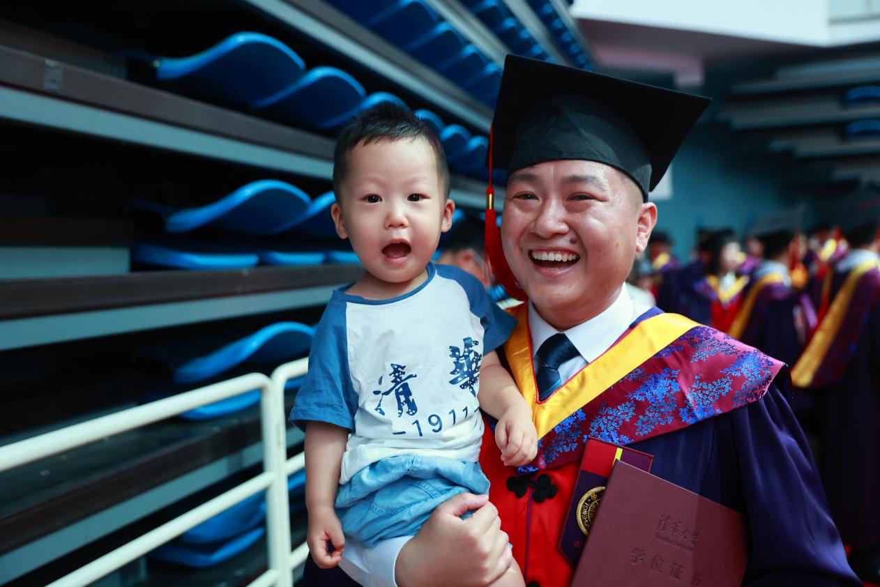 毕业典礼后,校领导在综合体育馆内为毕业生一一拨穗、授予学位,并与每一位毕业生合影留念。