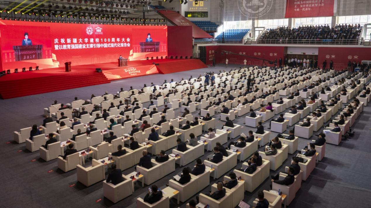 9月21日上午,庆祝新疆大学建校100周年大会在乌鲁木齐举行。自治区党委书记、兵团党委第一书记、第一政委马兴瑞,全国人大常委会原副委员长司马义·铁力瓦尔地等出席。邱勇出席庆祝大会并致辞,向新疆大学全体师生和校友致以热烈祝贺。