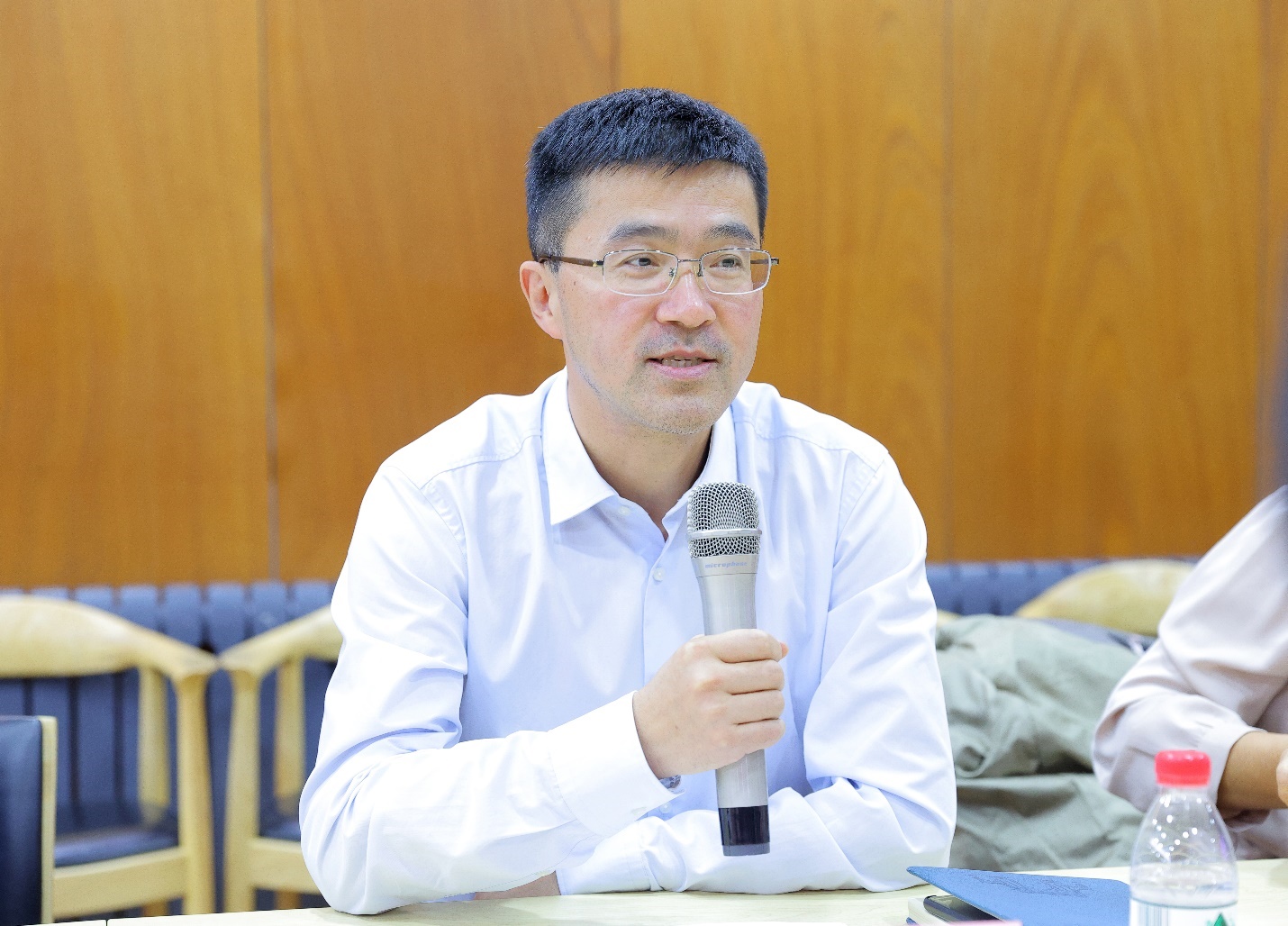 核研院2023级硕士生于鸿飞、公管学院2023级博士生刘宇尘等组织保障同学,法学院2024级博士生陈子晗(饰邓稼先)、生命学院2024级博士生杨晓征(饰邓以蛰)、美术学院2024级硕士生杨罗锋(饰小高)、化工系2024级硕士生杨宗郁(饰小张)、航院2023级本科生陈秀虎(饰实验员)、航院2022级本科生孟鼎杰(景片演员)、日新书院2021级本科生乐宸旸(舞蹈演员)等演员,以及新闻学院2023级硕士生张渊沫(舞台监督)、笃实书院2024级本科生李芷嫣(道具工作人员)等技术台口同学交流发言,分享了自己亲身参与《马兰花开》第100场公演的经历、成长与感悟。同学们纷纷表示要继续演绎好邓稼先学长的事迹,让马兰花绽放在校园内外,盛开在更多人的心里。