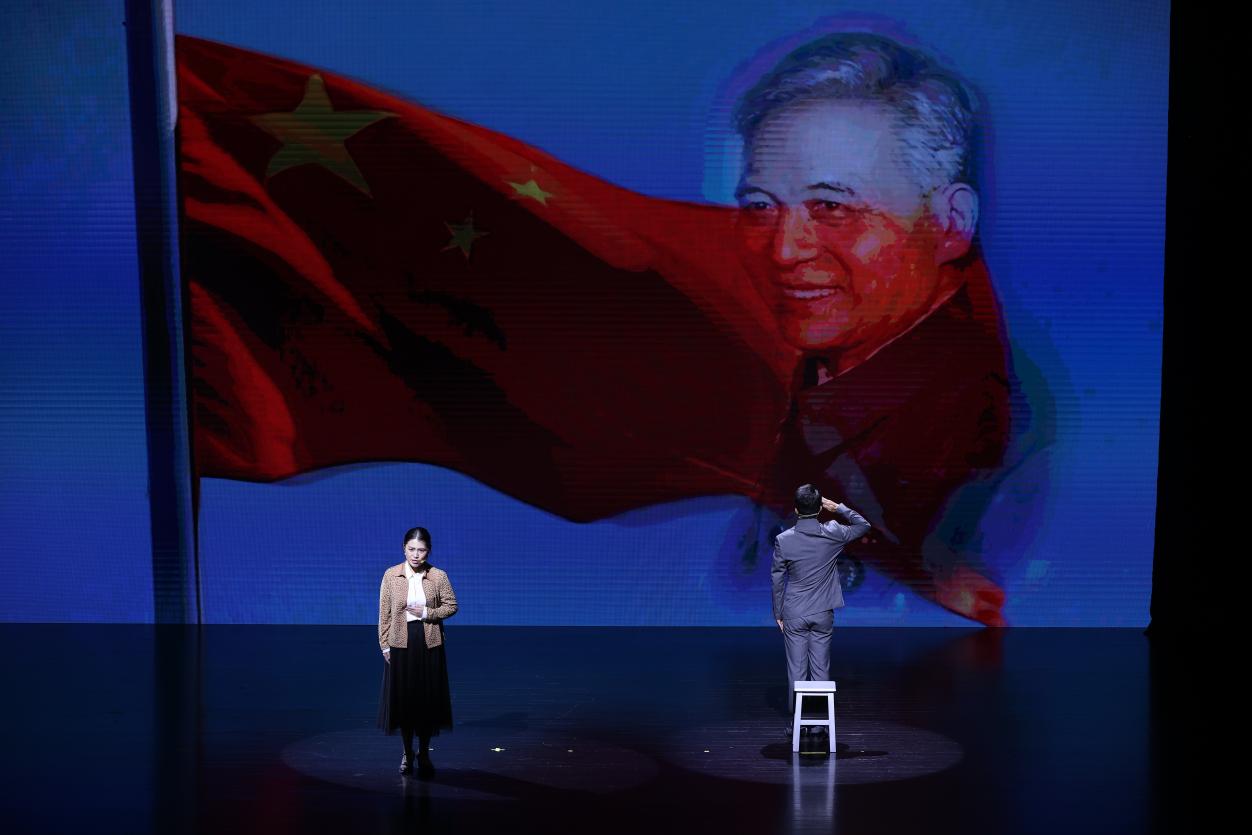 “这是中国第一颗原子弹爆炸成功的历史画面。光焰无际,好似1000个太阳发出的耀眼光芒。”屏幕上珍贵的历史画面与舞台上的音乐、朗诵交相辉映,音乐诗画剧在慷慨激昂的诵读声中拉开了序幕。演员们以充满激情的精湛表演,带领观众穿越时空,重返那个洋溢着热血与奋斗精神的年代,与老一辈科学家们同呼吸、共命运,体会他们矢志不渝的家国情怀和丰满鲜活的英雄气概。