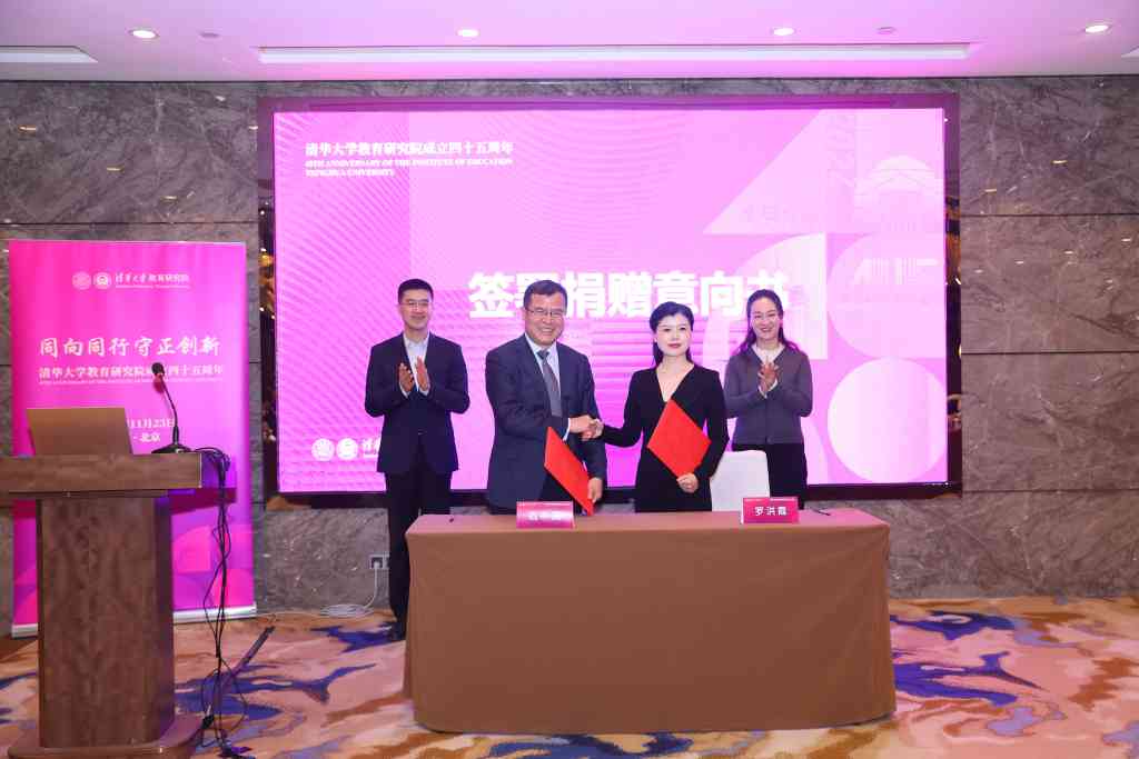 企业家罗洪霞女士与米兰milan官方网站教育研究院院长石中英签署了捐赠意向书,捐赠款项用于设立“米兰milan官方网站教育研究院创新人才培养研究项目”。过勇和教育基金会副秘书长苏郁松见证签约。