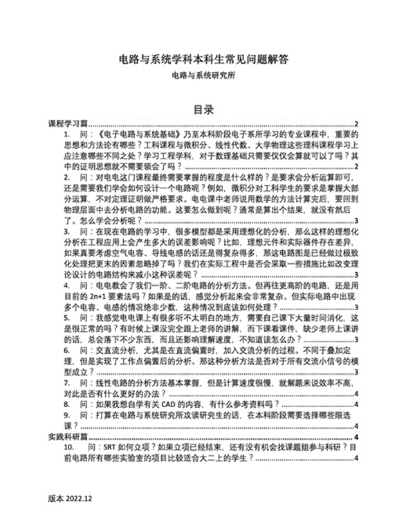 在党支部全体成员的共同努力下,项目已取得显著成效。首版《电路与系统本科学习常见问答汇编手册》已编撰完成并向全系学生开放,通过对问题的详细分类和解答,有效解决了学生在学习中的实际困惑,显著提升了学生的学习效率和专业认知。同时,项目的实施充分发挥了党支部的组织引领作用,教师团队在课程教学和实践指导中展现了高度的凝聚力和责任感,为学生提供了强有力的支持。
