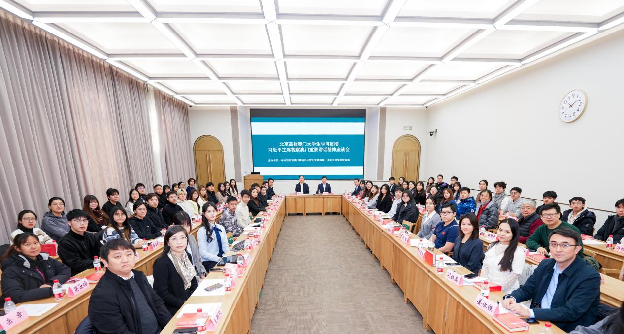 会上,同学们围绕学习贯彻习近平主席视察澳门重要讲话精神踊跃发言。共有20位来自北京高校的澳门学生代表、两位澳门高校毕业的内地校友代表作专题发言,香港、澳门、台湾和内地学生代表在自由交流环节发表学习体会。大家纷纷表示,聆听习近平主席讲话备受鼓舞,汲取了不断奋进的精神力量,对澳门未来发展和“一国两制”行稳致远充满信心。同学们结合所学专业就澳门未来发展提出新颖创见,展现出立志投身国家建设、推动澳门繁荣发展的使命与担当。