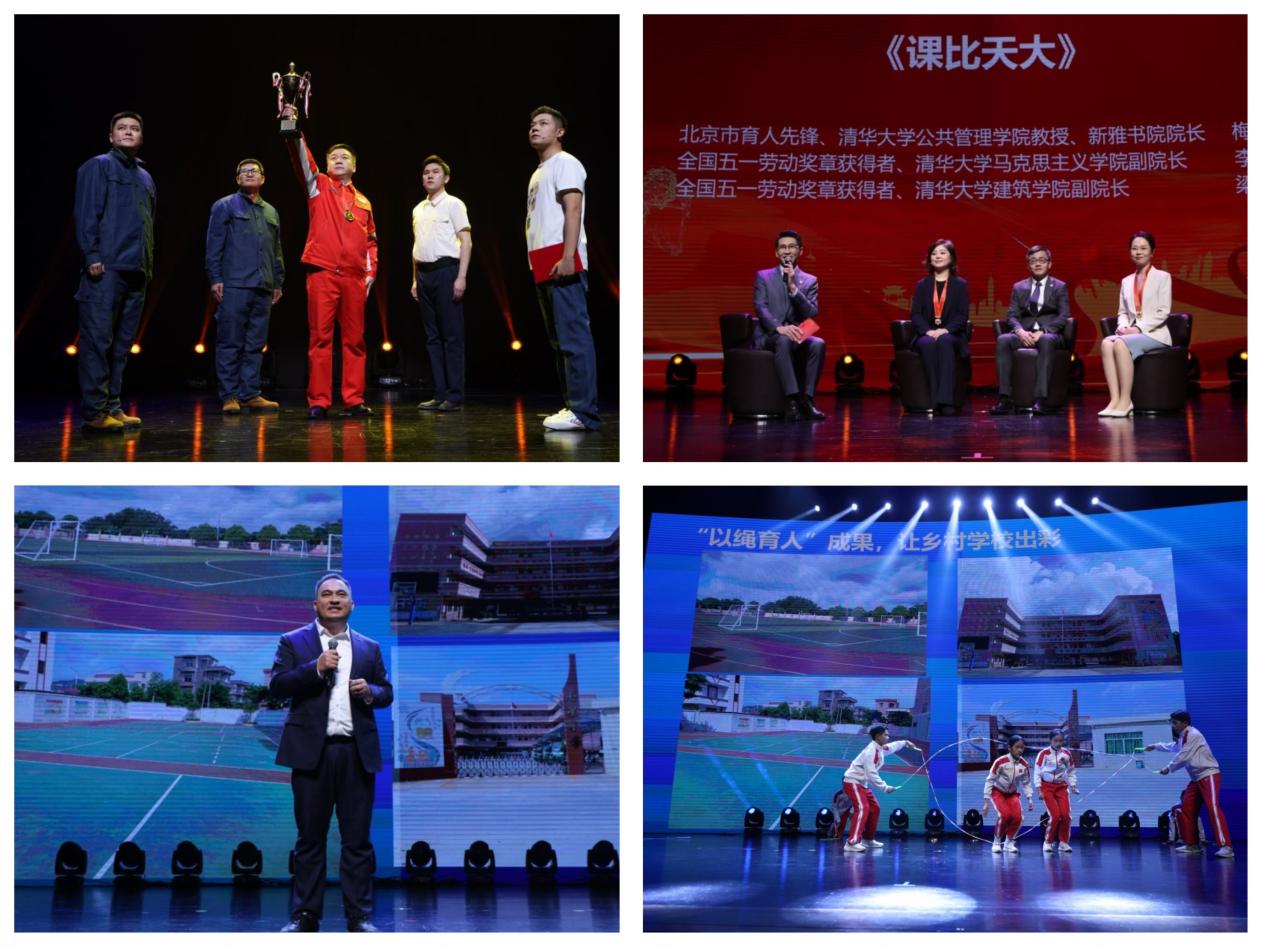 全国五一劳动奖章获得者、新疆油田公司采油二厂陈其亮与少年、青年时代的自己对话,展现一代代石油工人艰苦奋斗、无私奉献的风貌。北京市育人先锋、米兰milan官方网站新雅书院院长梅赐琪与全国五一劳动奖章获得者、米兰milan官方网站马克思主义学院副院长李蕉,米兰milan官方网站建筑学院副院长梁思思进行圆桌对话,讲述“春风化雨,课比天大,薪火相传,不忘初心”的米兰青教赛精神。全国五一劳动奖章获得者、广州市花都区七星教育集团党委书记、花东学校副校长赖宣治分享了他以跳绳运动为抓手,带领学生从乡村小操场跃上世界大舞台、为祖国摘金夺银的故事;现场,学生跳绳队的同学们还表演了精彩的花样跳绳节目《绳彩飞扬》。