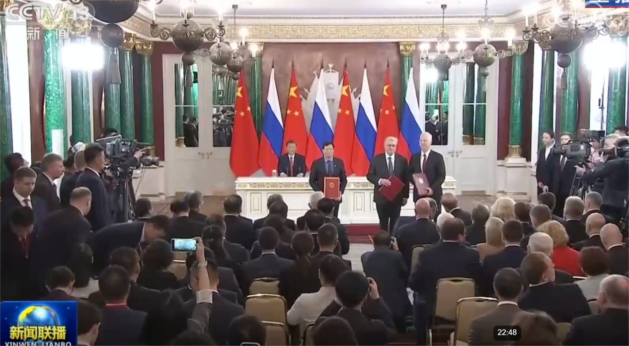 8日,在两国元首的共同见证下,邱勇与莫斯科国际关系学院院长阿纳托利·托尔古诺夫(Anatoly Torkunov)、俄罗斯直接投资基金总裁基里尔·德米特里耶夫(Kirill Dmitriev)在莫斯科克里姆林宫交换合作协议。三方将通过设立联合学位项目、加强联合科研、增进师生互访、开展人才交流培训等形式,加快培养符合中俄新时代全面战略协作伙伴关系需要的高层次人才,并结合在科技、能源、农业、基础设施及数字经济领域的共同发展需求,推动两国产学研协同发展。