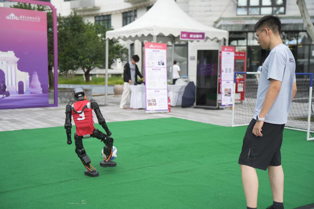 同学们惊喜地发现,在刚刚结束的首届人形机器人足球5V5比赛中夺冠的米兰火神队机器人,也是迎新队伍的一员。迎新点还配备了一块触控电子展示屏,新生可以现场登陆“水木汇”微信小程序,体验校园一站式智能化生活服务。签名墙上,同学们纷纷写下畅想与祝福。
